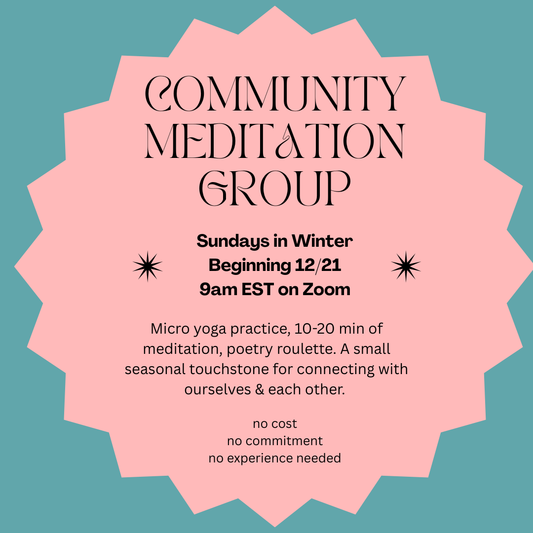 We have just 2 more meet-ups on the calendar for our Sunday morning meditation group. It’s never too late to join in — pop your name and email in the sign up form to get the Zoom links. I don’t record these; they are free, one-off micro practices, and I like the ephemerality of them. Check your junk folder if you signed up but aren’t receiving the emails.
