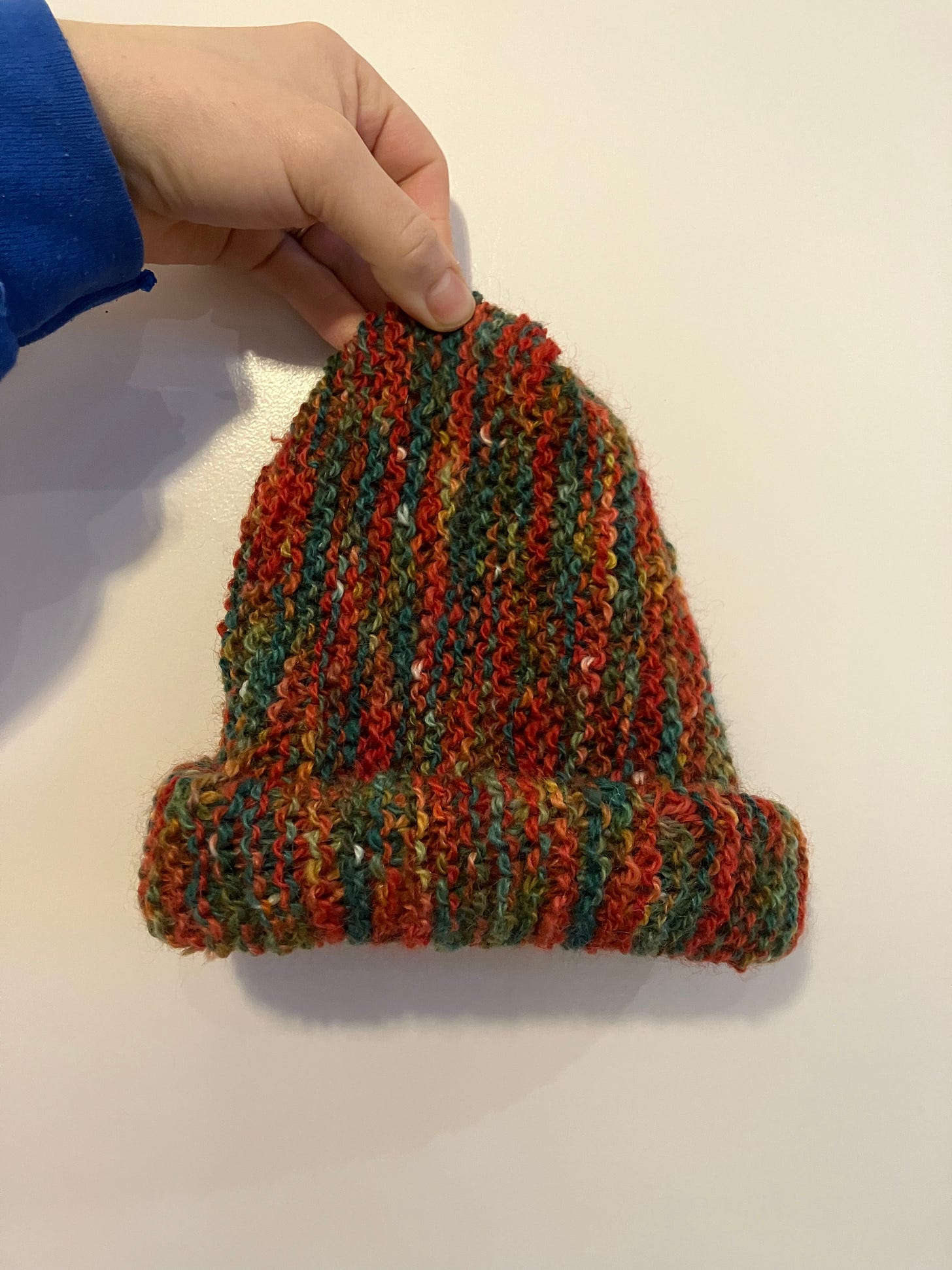 I made this baby hat for a client who will have her baby any day now. It had been awhile since I’d done any knitting and I found this to be a gentle, low-pressure way to ease back into it, since the whole thing is done with garter stitches. This is the pattern/video I used.